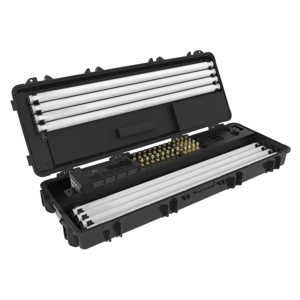The tubes are lightweight enough to be rigged in almost any position; with turtle stands for simple upright positioning, hanging brackets for attaching to overhead rigs, or just simply clip to any other fixture, they’re lightweight enough for nearly anything!